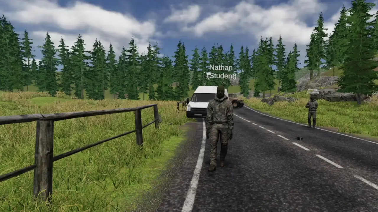 - Multiplayer support for multiple students training together alongside multiple instructors. The players may interact and communicate with one another in order to work together to complete the training scenario.