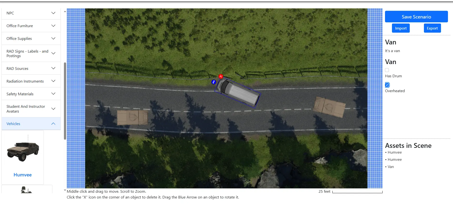 - The instructor panel gives an instructor complete control over the training scenario, allowing for the customization of CBRNE sources and the tools available to the students.